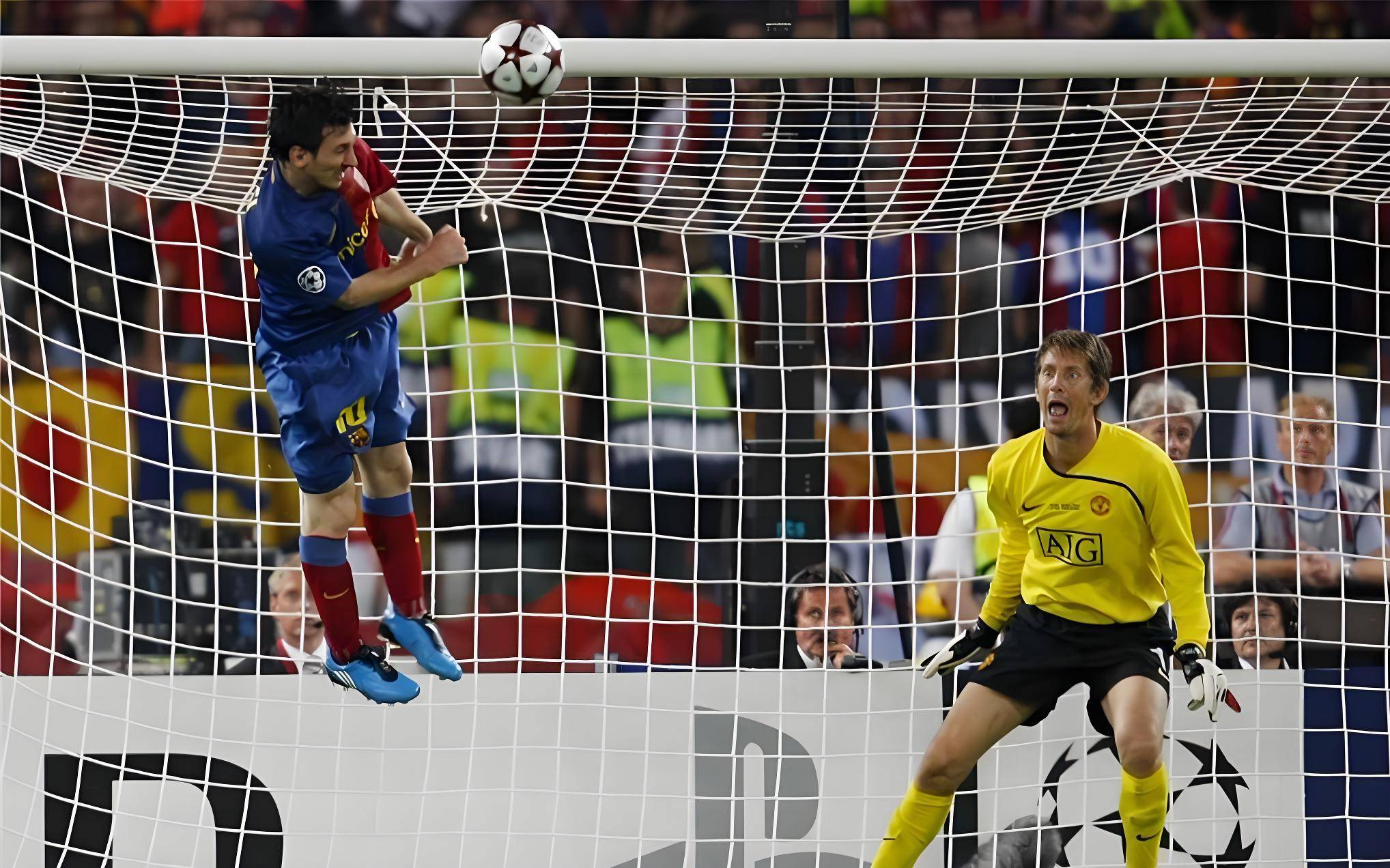 梅西2009年对阵曼联的头球被做成艺术品并被拍卖,估价百万!